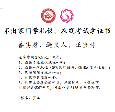 礼仪培训师资格证考试已经实现全面线上化。礼仪培训师证书可以线上考试了,考取的证书跟线下考试的证书一模一样。